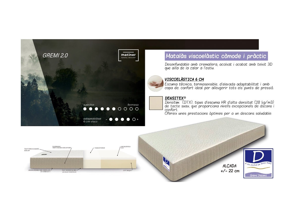 El corazón del Colchón Tatuin es su núcleo compuesto por una capa viscoelástica de 6 cm, que proporciona una acogida progresiva y personalizada. Esta tecnología se adapta a los contornos del cuerpo, aliviando puntos de presión y mejorando la circulación sanguínea. Su comportamiento termosensible garantiza una adaptación inmediata sin perder firmeza, ofreciendo una sensación de suspensión controlada que favorece un sueño profundo y reparador. Ideal para quienes buscan una superficie suave pero con soporte estable.